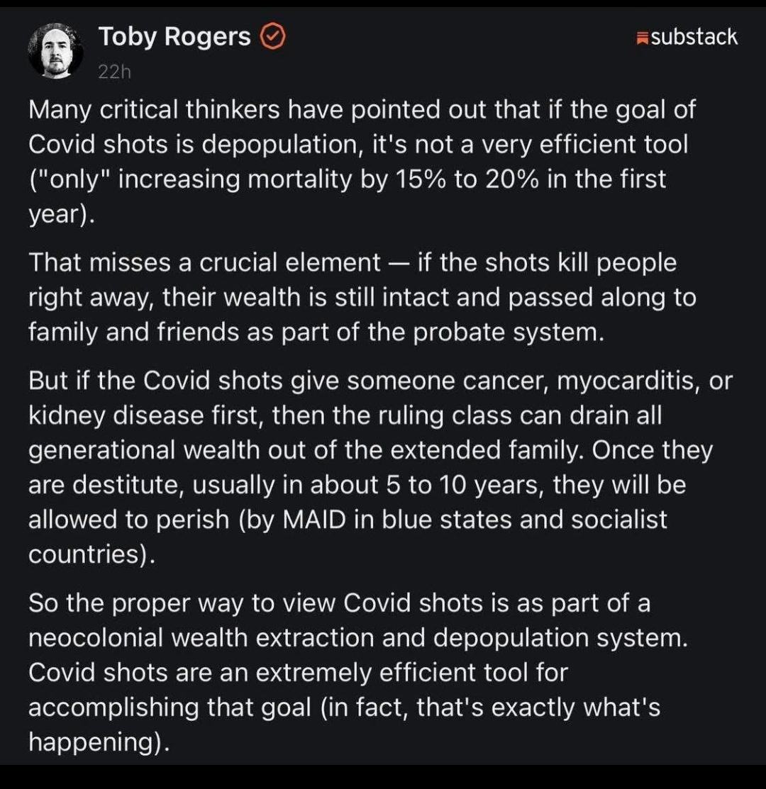 this was meant to slowly kill ppl of cancer and other diseases. my own mom has leukemia after she got the moderna boosters. fuckers!