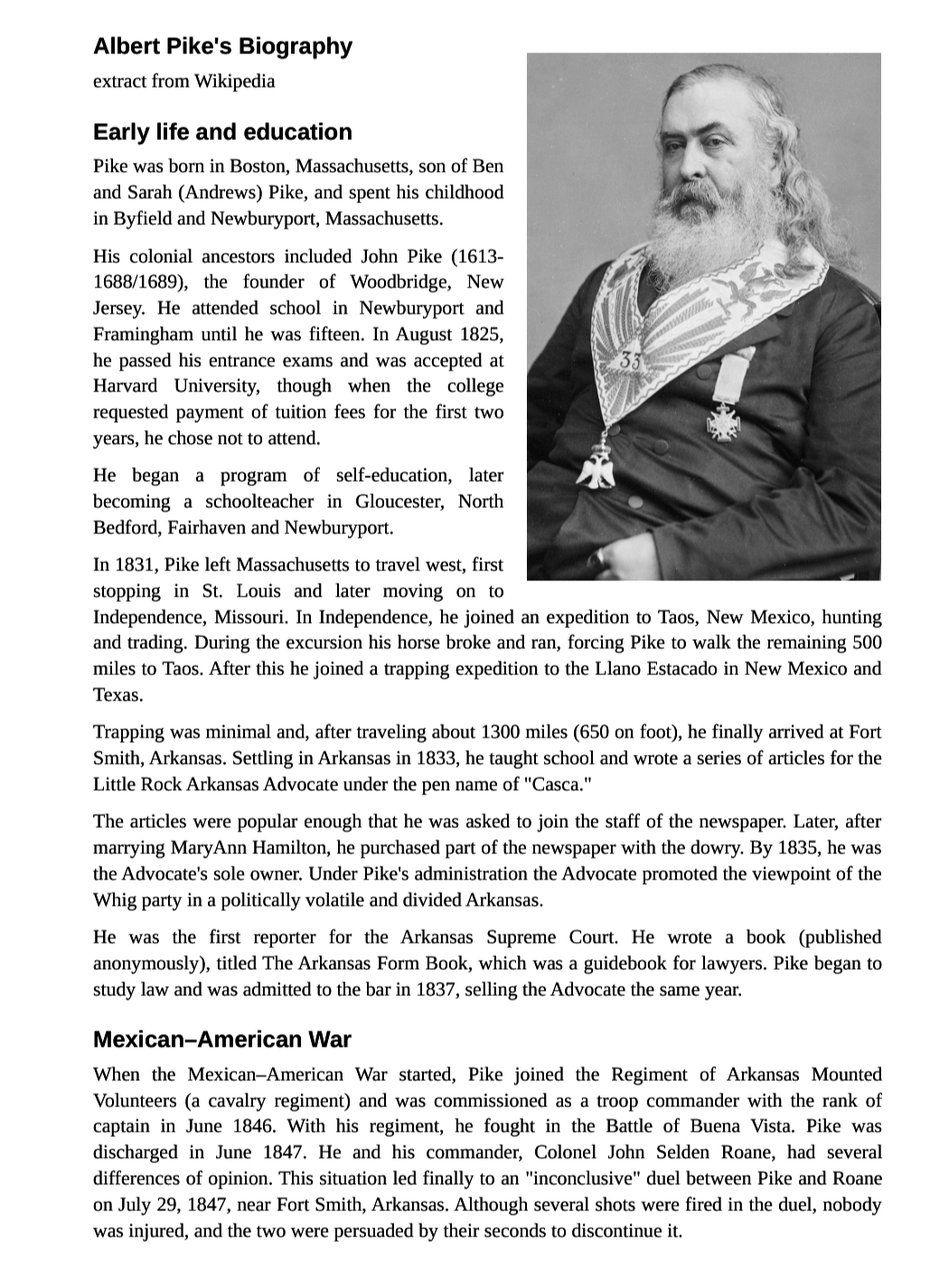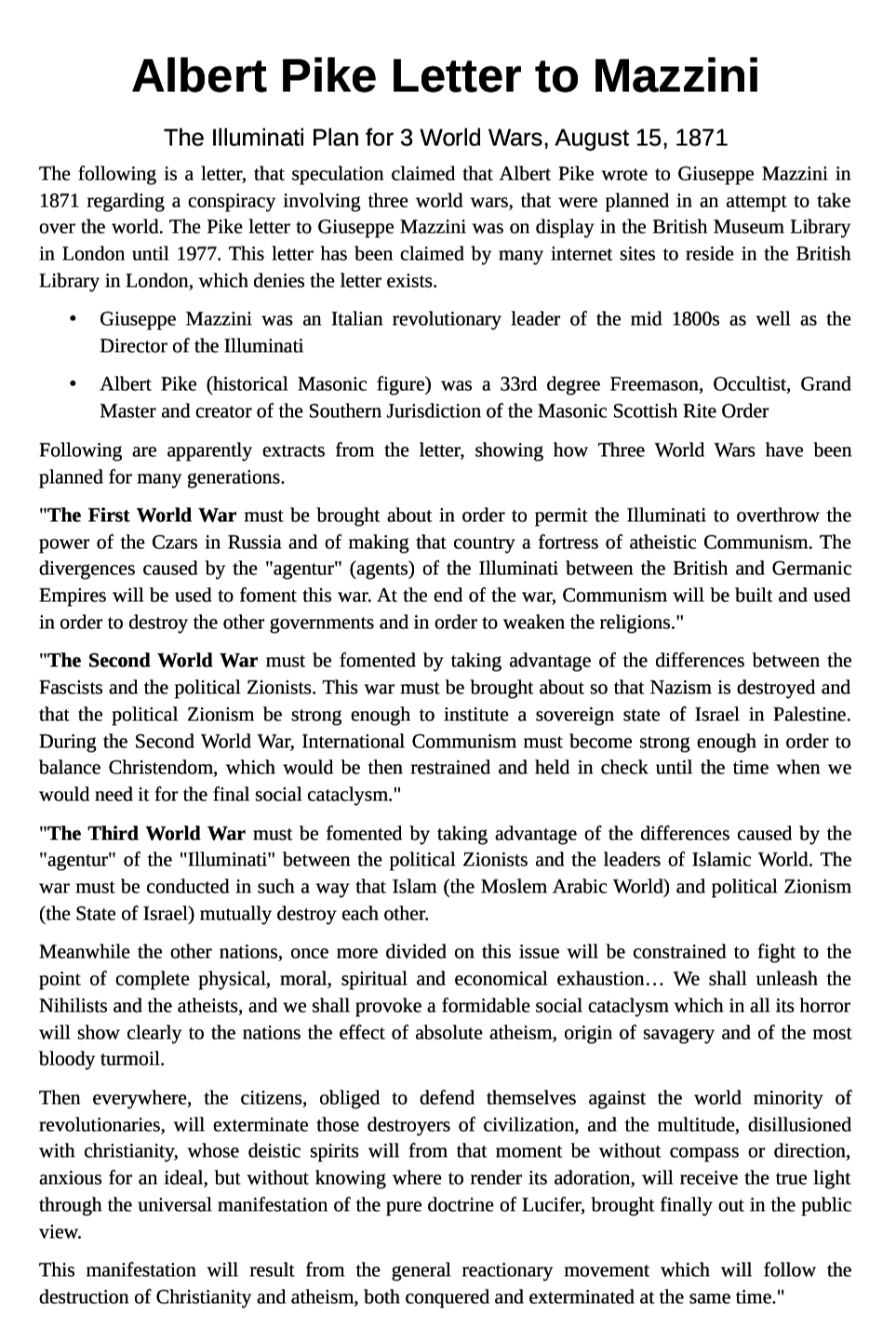 Albert Pikes WW3 letter